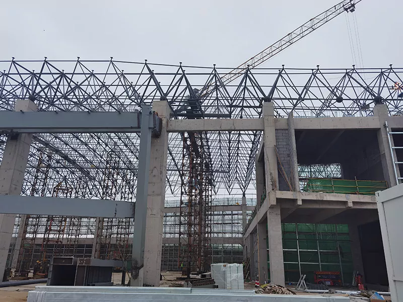 Selain itu, stasiun kereta api rangka logam cepat dibangun. Komponen logam prefabrikasi dapat dengan mudah dirakit di lokasi, secara signifikan mengurangi waktu konstruksi dan biaya. Ini tidak hanya menghemat uang tetapi juga memungkinkan stasiun untuk diselesaikan dan beroperasi lebih cepat, melayani masyarakat dengan lebih efisien.