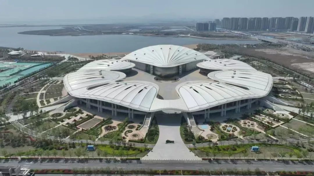 Terletak di Zona Demonstrasi SCO Qingdao, pusat Expo SCO Pearl yang luar biasa meninggalkan kesan abadi di sepanjang Danau Ruyi. Dilihat dari atas, desain yang terinspirasi dari "Unity" melingkar memiliki tujuh atap putih yang saling berhubungan, seperti shell yang disusun secara radial. Mereka menciptakan gelombang berirama, bergelombang yang naik dengan elegan ke langit.
