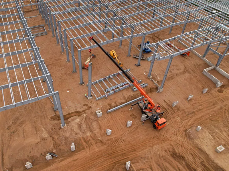 Komponen baja, termasuk balok, kolom, kawat gigi, dan gulungan atap, diproduksi dalam pengaturan pabrik. Baja berkualitas tinggi digunakan, dan komponen diproduksi untuk spesifikasi yang tepat untuk memastikan mereka cocok bersama secara akurat dan aman selama pemasangan. Lingkungan yang terkontrol ini memungkinkan langkah -langkah kontrol kualitas yang ketat, memastikan daya tahan dan keandalan komponen.