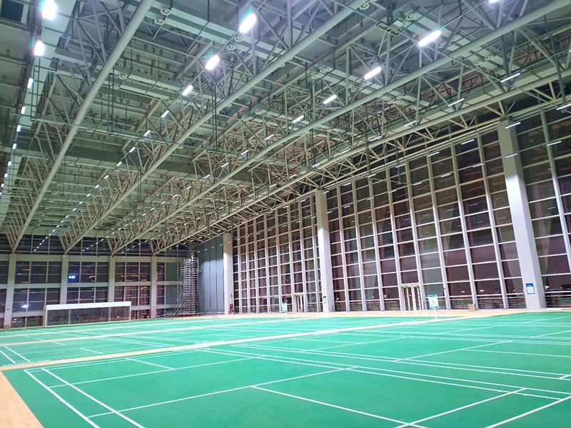 Ruang bebas kolom bentang besar: Dibandingkan dengan bangunan berstruktur beton tradisional, aula bulutangkis berstruktur baja tidak dapat mencapai kolom yang menghalangi pandangan di dalam venue, yang sangat menghemat ruang venue dan juga memberikan pengalaman menonton yang lebih baik bagi penonton.