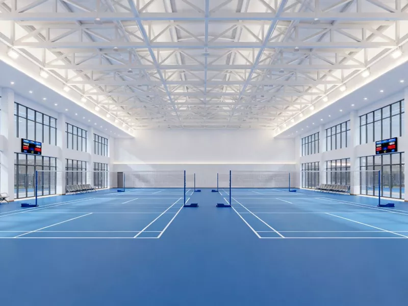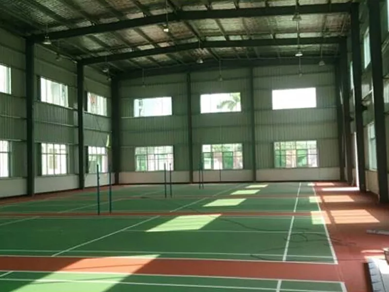 Di bawah perkembangan gedung olahraga modern, gedung bulu tangkis berstruktur baja secara bertahap menjadi bentuk struktural pilihan dalam pembangunan venue bulutangkis. Rangka utama yang terdiri dari balok baja dan kolom baja memperhitungkan kekuatan struktural, efek estetika, dan kinerja ekonomi, yang menunjukkan standar tempat olahraga profesional. Sebagai venue tertutup, aula bulu tangkis perlu memiliki sistem ventilasi dan efek isolasi termal yang baik. Aula bulutangkis berstruktur baja dapat menggunakan bahan dinding yang lebih ramah lingkungan dan insulasi termal, dan panel surya dapat dipasang di atap untuk menghasilkan listrik untuk sistem ventilasi.