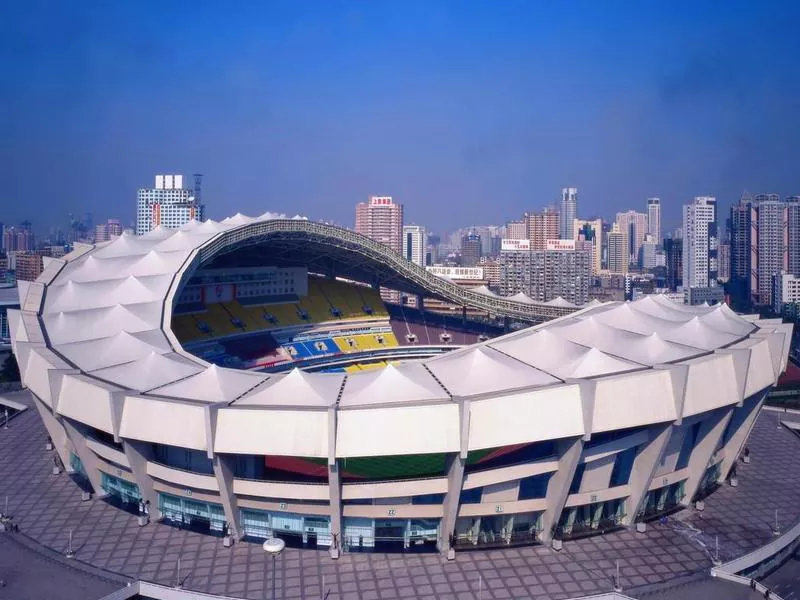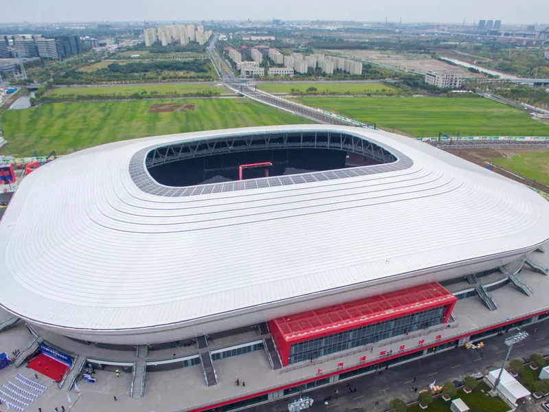 3. Struktur utama mengadopsi rangka spasial rentang besar atau sistem grid, menciptakan ruang terbuka bebas kolom, memastikan pemandangan yang tidak terhalang untuk semua penonton dan kemampuan untuk menutupi atap super besar untuk memenuhi persyaratan penggunaan semua cuaca.