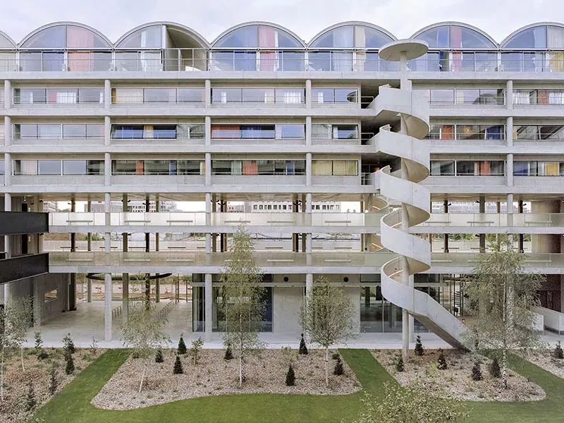 Sementara itu, tata letak ruang interior dari asrama struktur baja fleksibel, memungkinkan pembagian yang wajar berdasarkan kebutuhan siswa, menyiapkan ruang tamu yang nyaman, area studi, dan zona aktivitas publik. Desain eksterior mereka sederhana dan modern, menyatu dengan lingkungan kampus, dan baja dapat didaur ulang, sejalan dengan konsep perlindungan lingkungan, memberikan siswa dengan lingkungan hidup yang aman, nyaman, menyenangkan secara estetika, dan berkelanjutan.