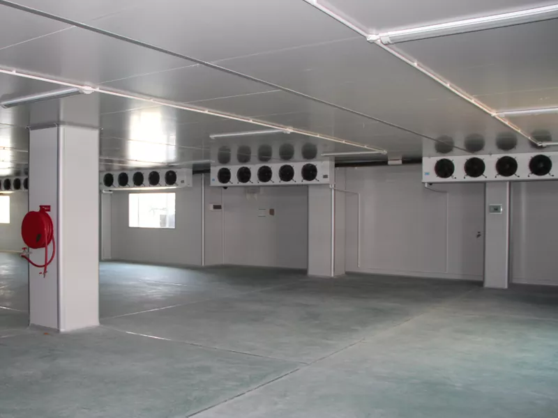 • Dinding gudang terbuat dari bahan isolasi komposit multi-lapisan dan dikombinasikan dengan teknologi penyegelan yang tepat untuk memastikan suhu internal yang stabil. Bahan-bahan isolasi ini tidak hanya dapat mengisolasi pengaruh suhu eksternal tetapi juga mengurangi hilangnya udara dingin, konsumsi energi yang lebih rendah, dan mencapai efek penghematan energi.